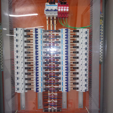 Implementação de redes elétricas para máquinas, iluminação industrial e sistemas de alta demanda.
